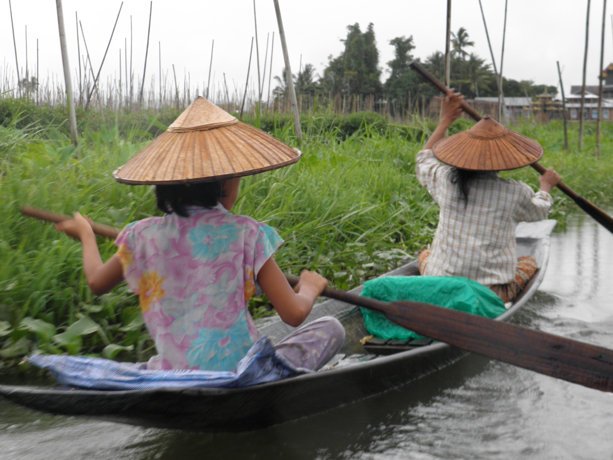 We have landed in the Inle Lake area of Burma. It is like traveling back to a very simple time. We see farmers plowing their fields with cows, horse and buggies used for transport. Inle lake is in the center eastern part of the country. A very fertile area, Inle lake is a shallow lake that is the agricultural heart of Burma. Hundred of floating islands of tomatoes and other vegetables. We flew to Heho, and then took a bus and boat to our hotel, the Inle Princess. Beautiful and very peaceful. Right out of George Orwell’s “Burmese Days”.