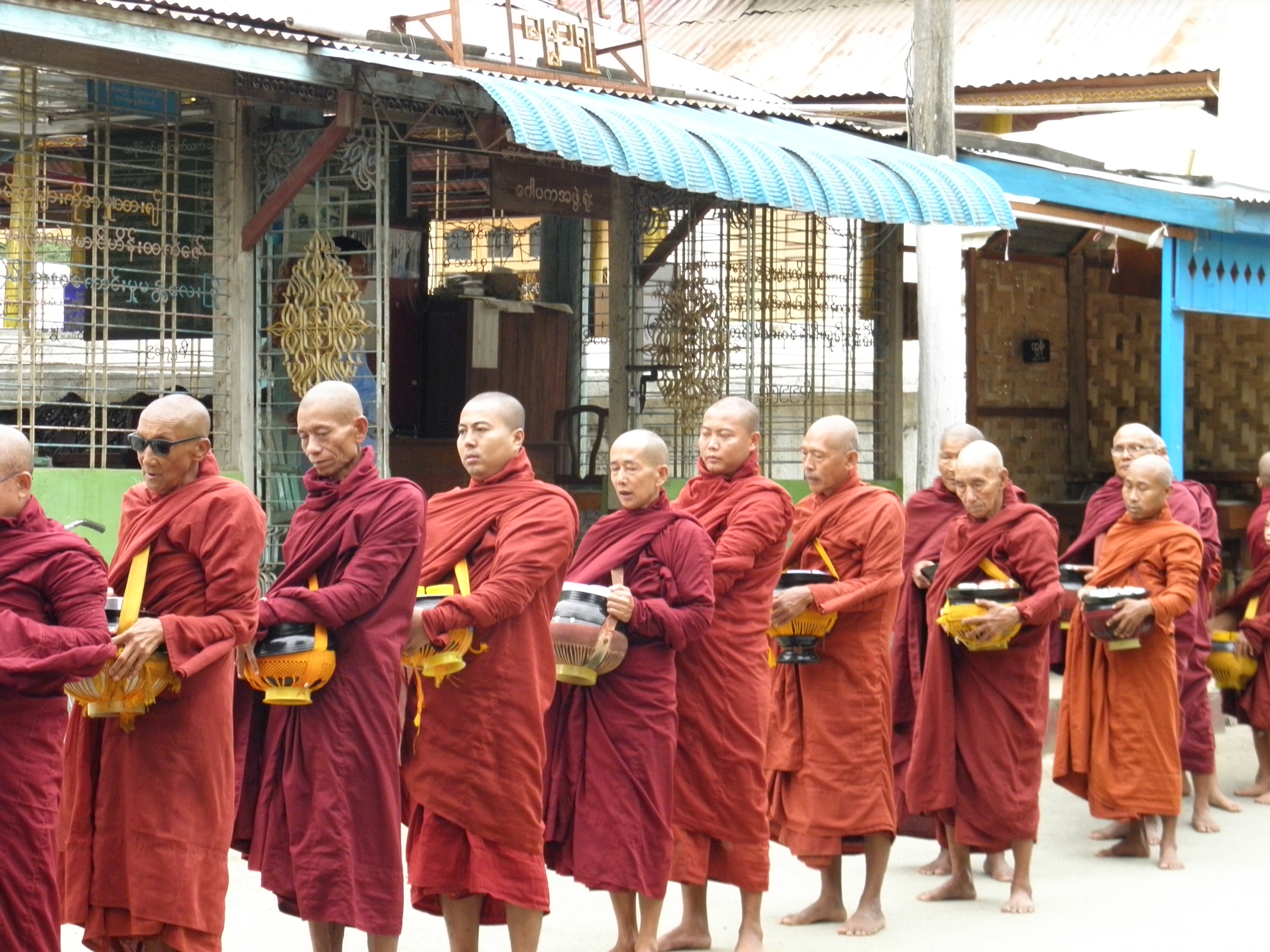 Monks in line for their first meal of the day- Mandalay